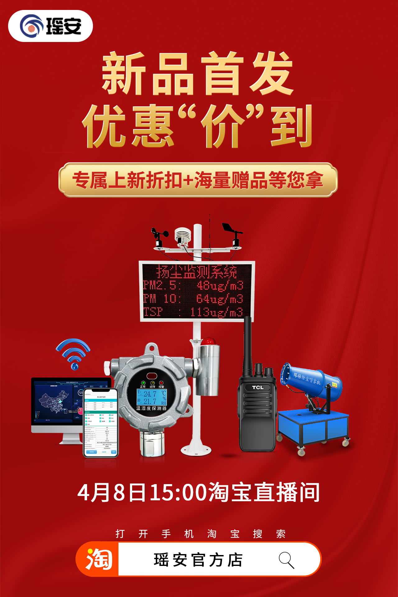 4月8日,瑤安直播間內(nèi)不僅可以享受上新折扣,更有價值1300元的除塵霧炮、TCL對講機、免費聯(lián)網(wǎng)功能、云平臺APP等多款好禮送不停,超值且實用!