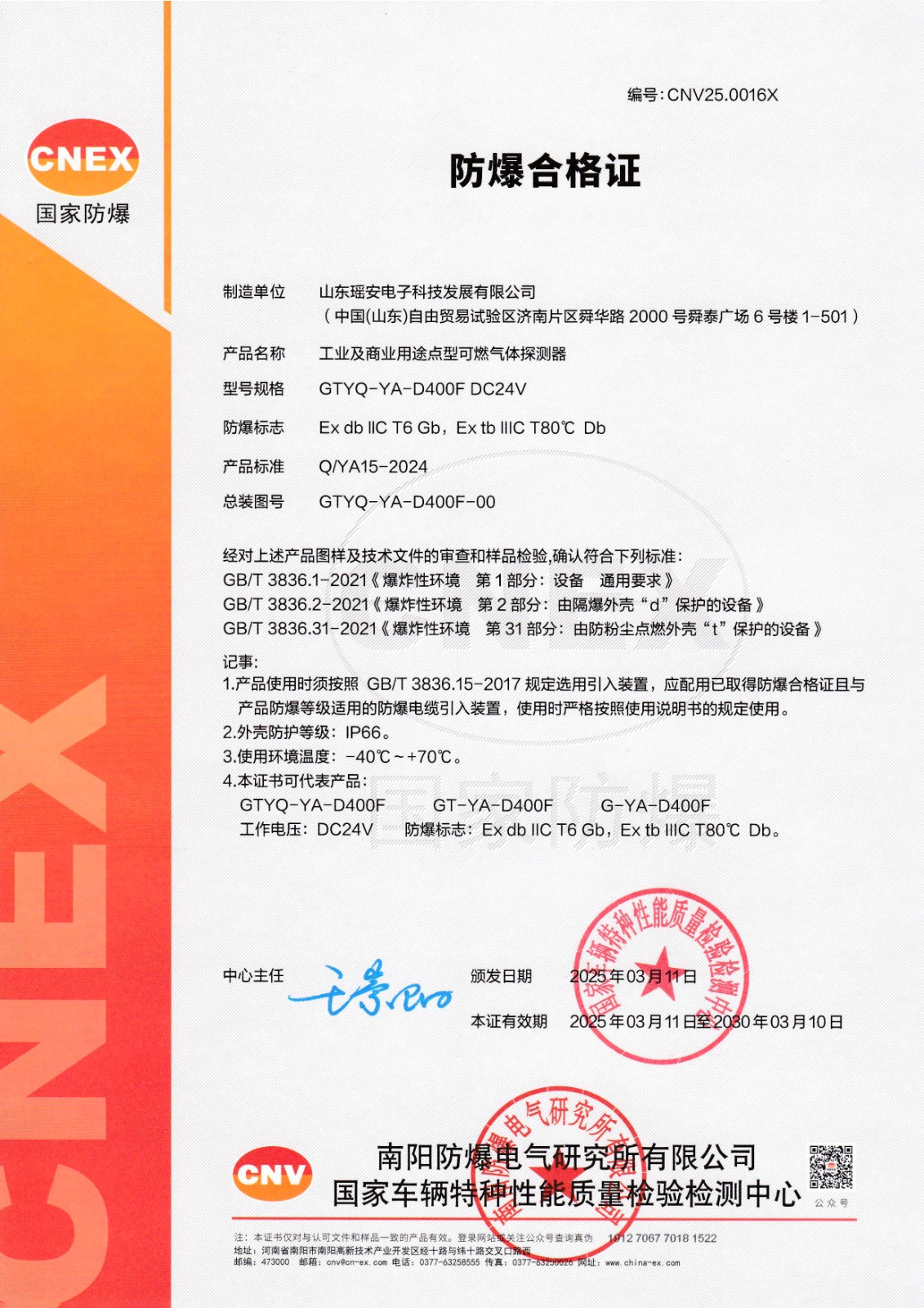 GT-YA-D110F防爆合格證